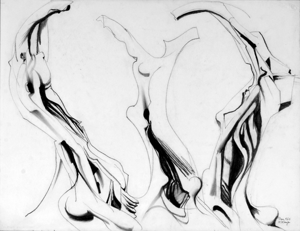 36 Olivenbäume, sign. Pau 4.64 K.Kunz, Bleistift, 50 x 65 cm