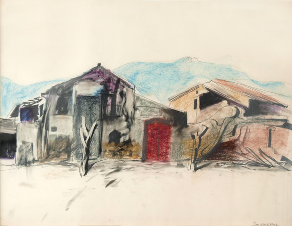 37 Häuser, sign. Pau 4.64 K.Kunz, Bleistift/Kohle/Pastell, 50 x 65 cm