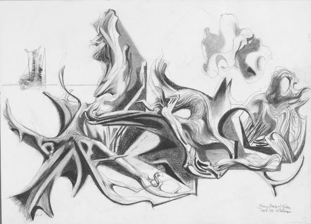 Blatt 18, sign. Bärenfleck-Hütte Sept.51 K.Kunz, Bleistift/Kohle 36 x 50,5 cm