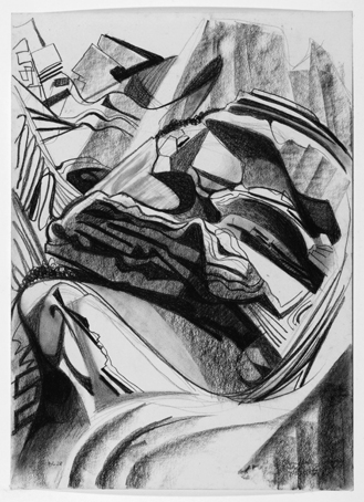 Blatt 28, sign. Bärenfleck-Hütte Sept.51 K.Kunz, Kohle, 50,5 x 36 cm