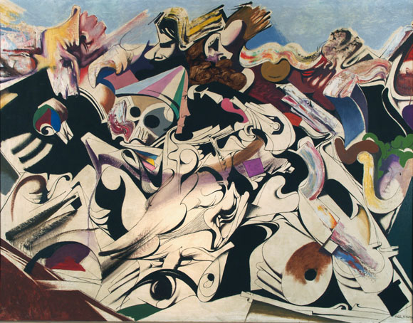 394 Scheiterhaufen, Juni 1962, Öl auf Hartfaser, 100 x 130 cm, sign.6.62 K.Kunz