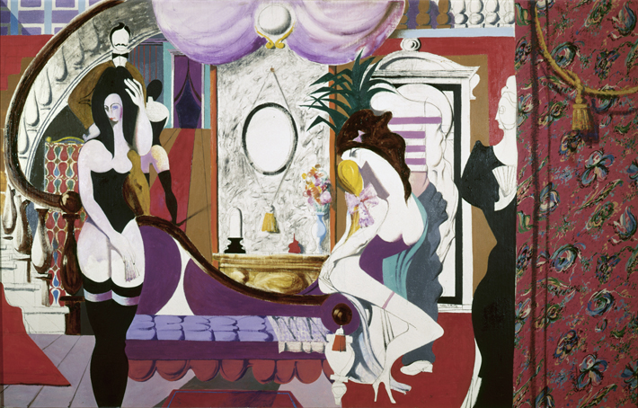514 Im Salon, Januar 1966, Öl mit Collage (Stoff) auf Hartfaser, 127 x 200 cm,