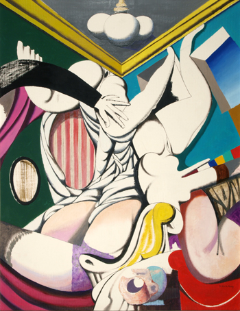595 Stürzende, Juli 1970, Öl auf Hartfaser, 130 x 100 cm, sign. 7.70 K.Kunz