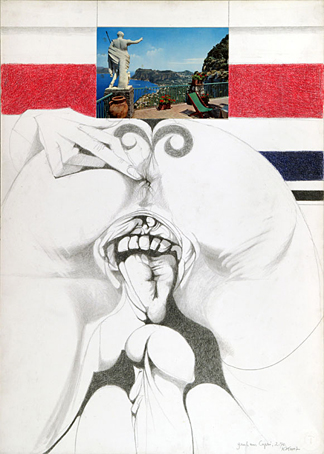 56 sign. Gruß aus Capri, 2.70, K.Kunz, Bleistift/Pastell/Collage, 51 x 36,5 cm