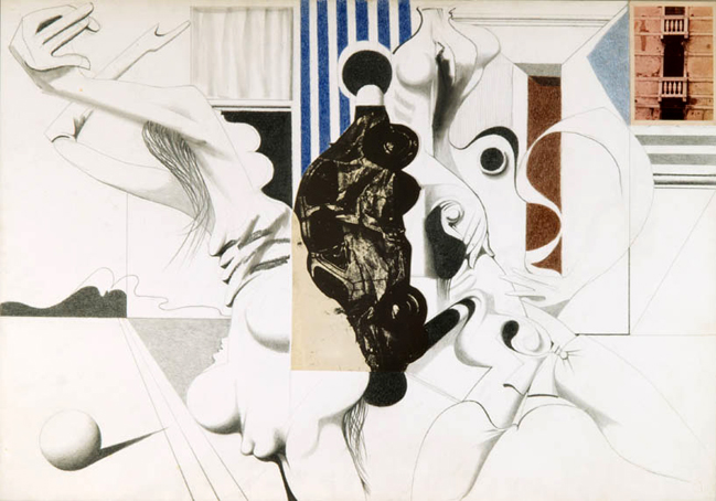 93 unsigniert, 1971, Bleistift/Pastell/Collage, 51 x 73 cm