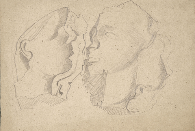 10 Gussformen von Frauenköpfen, Studie, 1947-1949, unsign. Bleistift, 25,5 x 38 cm