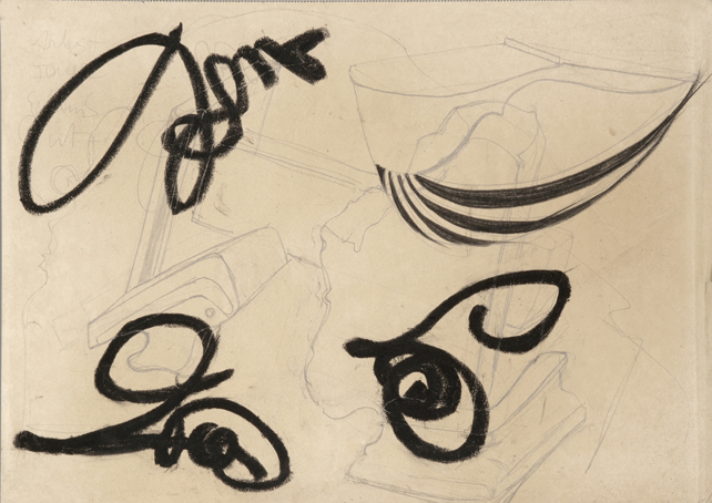 13 kalligraphische Studien, 1947-1949, unsign. Bleistift/Kohle, 30 x 42 cm