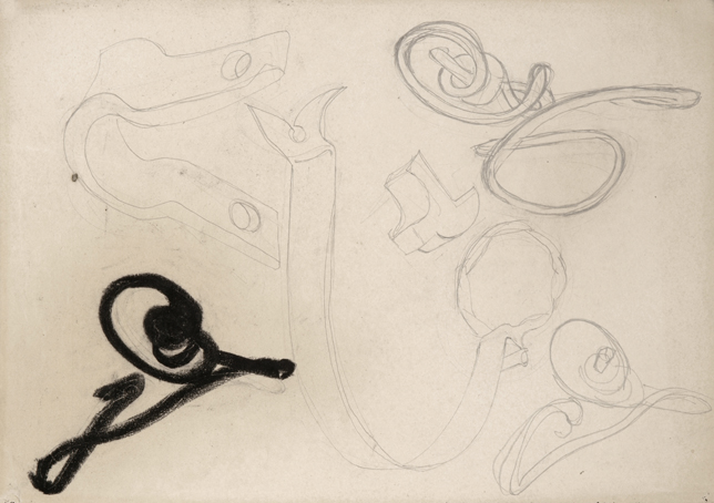 14 Studie von Bändern und Kalligraphie, 1947-1949, unsign. Bleistift/Kohle, 30 x 42 cm
