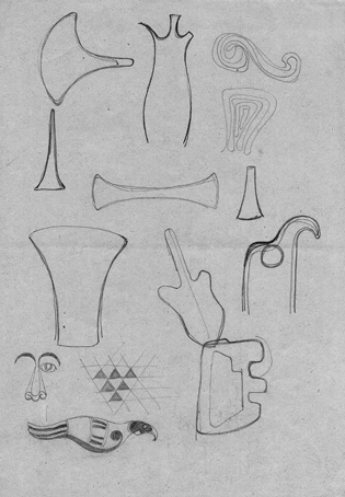 21 Studie unterschiedlicher Formen, 1947-1949, unsign. Bleistift, 30 x 20 cm