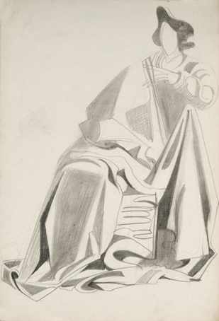 3 Frau mit Tuch drapiert, Studie 1947-1949, unsign. Bleistift, 47,5 x 33 cm