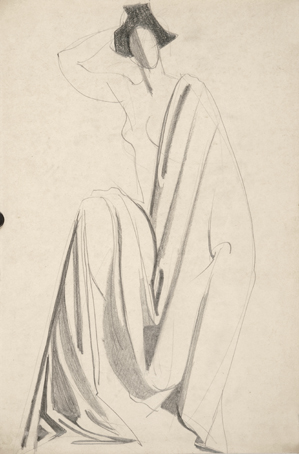 4 Frau mit Tuch drapiert, Studie 1947-1949, unsign. Bleistift, 49 x 32 cm