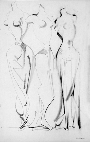 53 Kleiderpuppen, 1959, sign. 11.59 K.Kunz, Bleistift, 65 x 42 cm