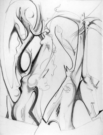 79 Stillleben mit Wurzeln, 1968, unsigniert, Bleistift/Kohle, 65 x 50 cm