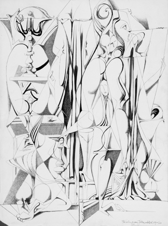 12 Federzeichnung zu Ölgemälde WV 287 o.T. 1959, sign. K.Kunz „Für Celia zum Jahreswechsel 59-60“, ca. 28 x 22 cm