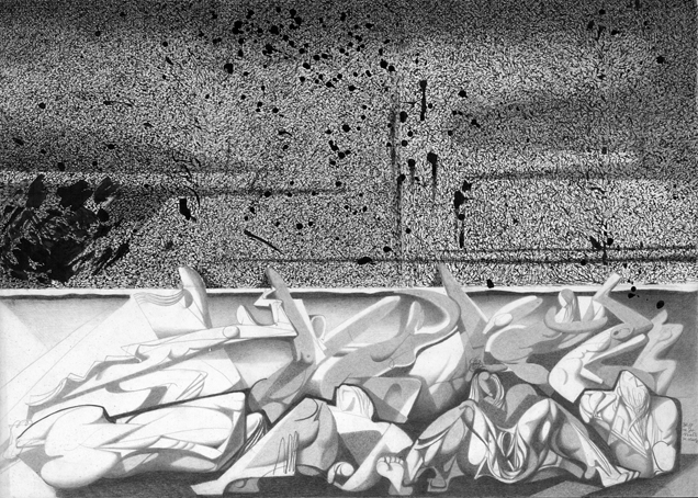 Blatt 37 zum 14. Gesang, sign. Nov.52 K.Kunz, Bleistift und Tusche