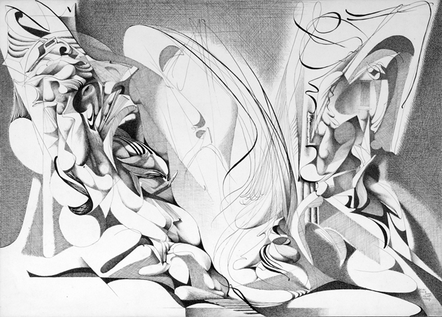 Blatt 40 zum 18. Gesang, sign. Nov.55 K.Kunz, Tusche