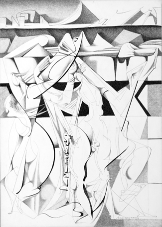 Blatt 42 zum 16. Gesang, sign. Nov.55 K.kunz, Tusche