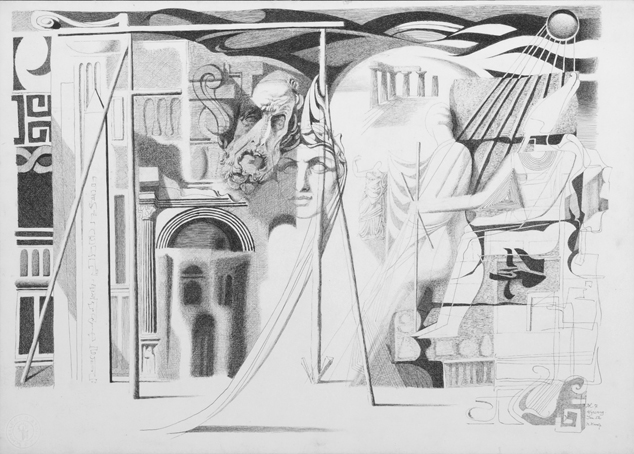 Blatt 7 zum 4. Gesang, sign. Jan.52 K.Kunz, Tusche