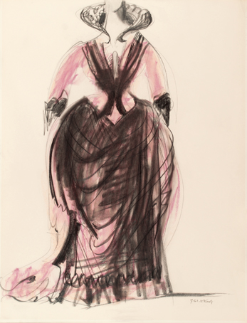 Kostüm 2, sign. 7.62 K.Kunz, Kohle und Pastell auf Papier, 65 x 50 cm