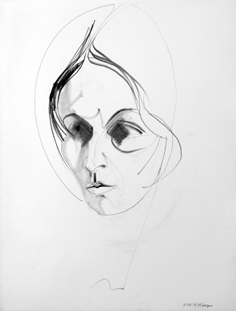 23 Portrait-Skizze einer jungen Frau, sign. 7.65 K.Kunz, Bleistift, 65 x 50 cm